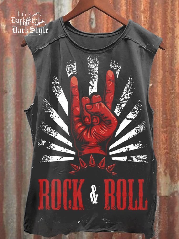 Unisex Retro Rock Music Gesture Rock&roll Print 100% cotton Casual Tank Top
