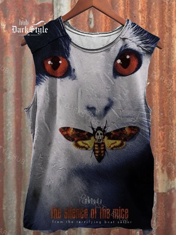Unisex Retro The Silence of The Mice Cat Print Casual Tank Top