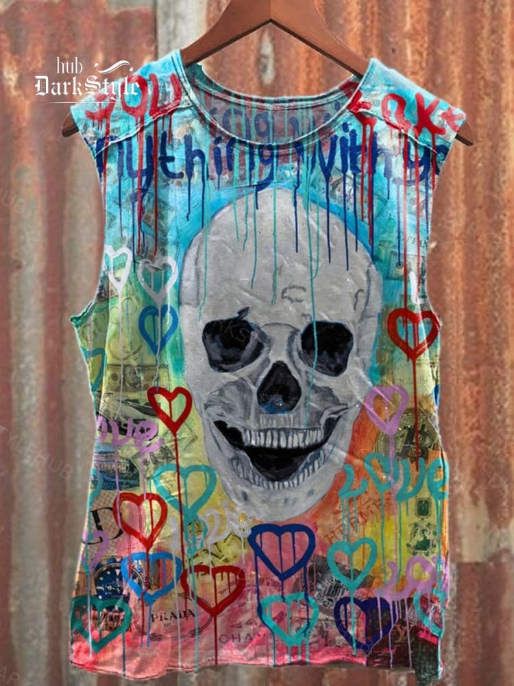 Unisex Skull Graffiti Art Illustration Print Casual Tank Top