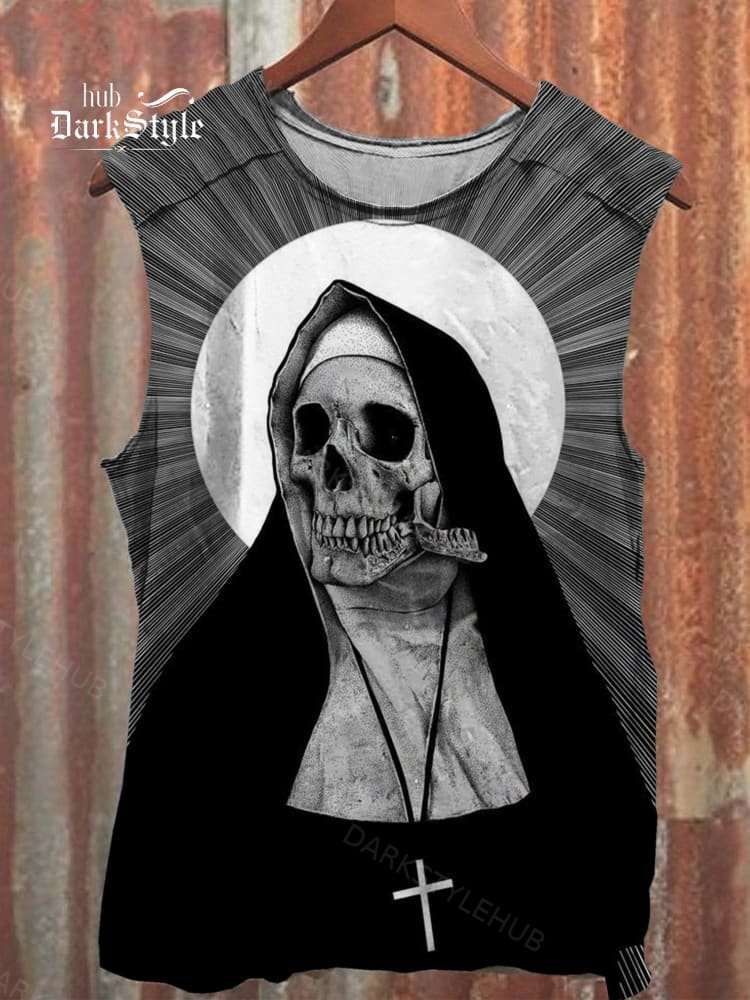 Unisex Skull Nun Print 100% Cotton Casual Tank Top