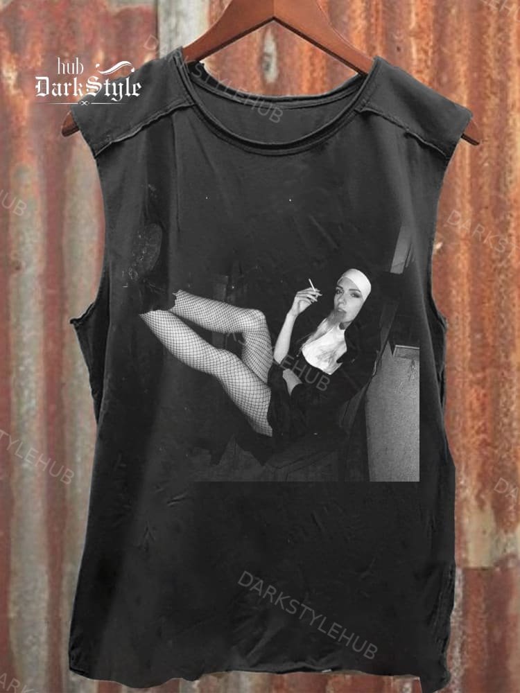 Unisex Smoking Nun Print 100% Cotton Casual Tank Top