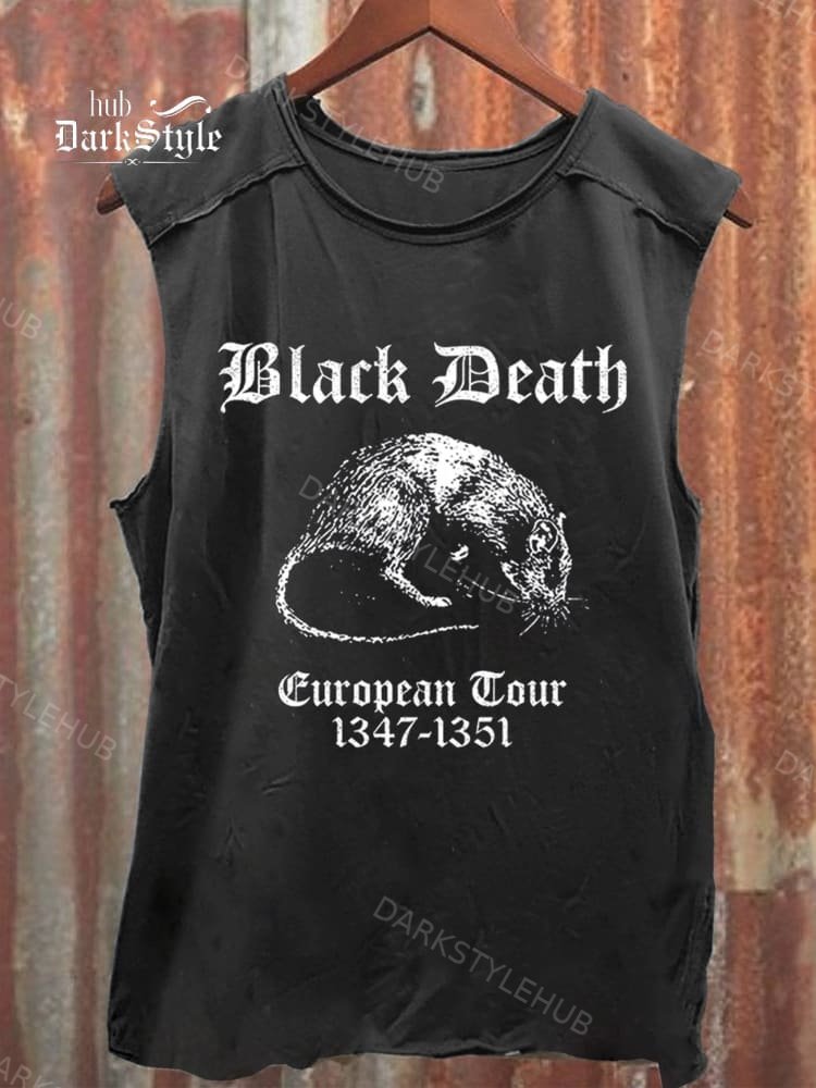 Unisex Vintage Black Death European Tour Print 100% Cotton Casual Tank Top
