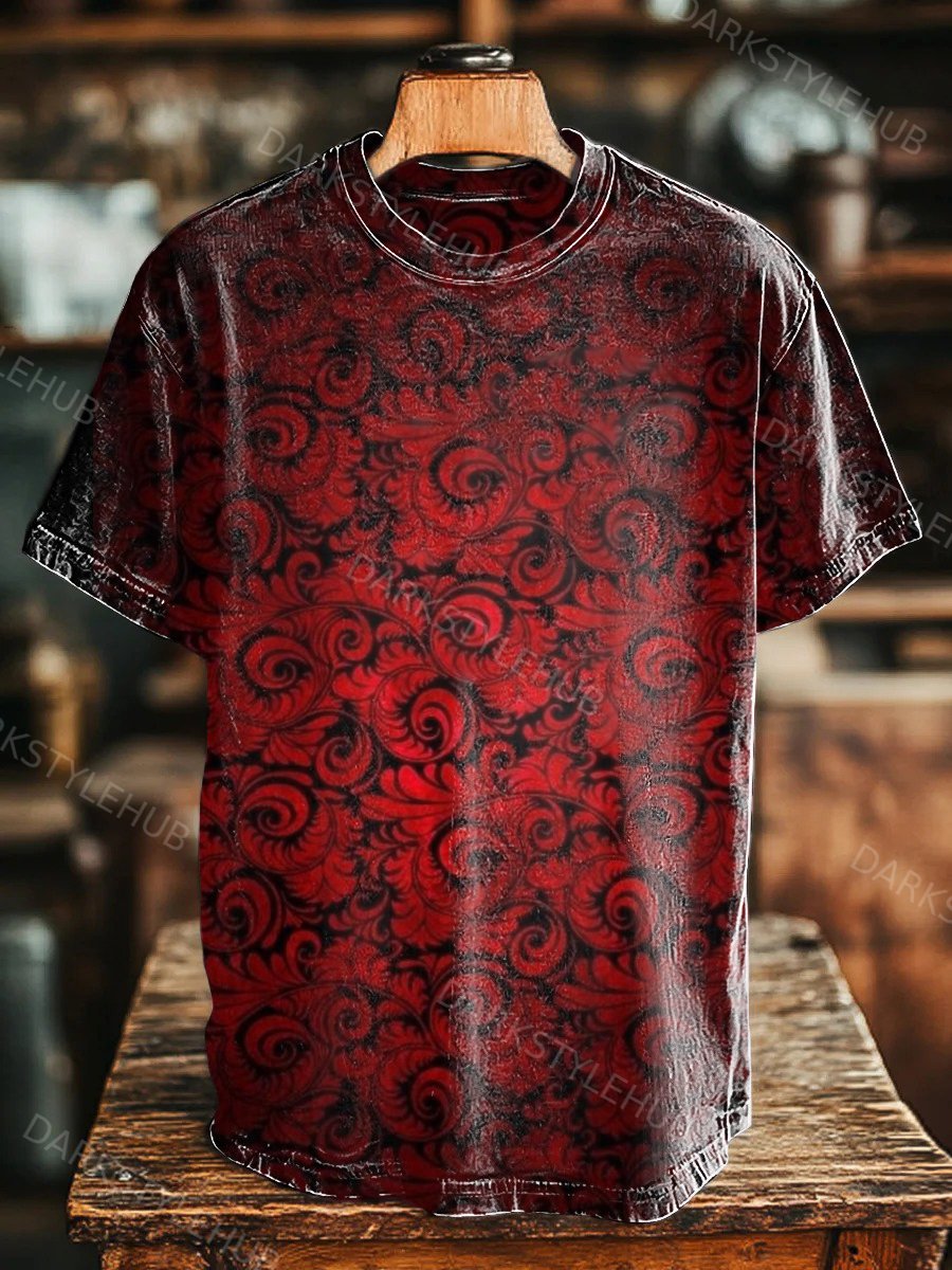 Unisex Vintage Gradient Floral Print Casual Loose T-Shirt