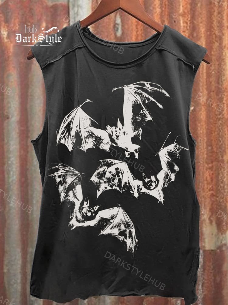 Unisex Vintage Three Bats Print 100% Cotton Casual Tank Top