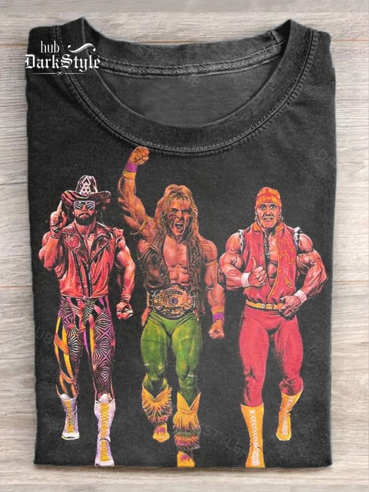 Unisex Wrestling Illustration Printed Casual Short Sleeve T-Shirt