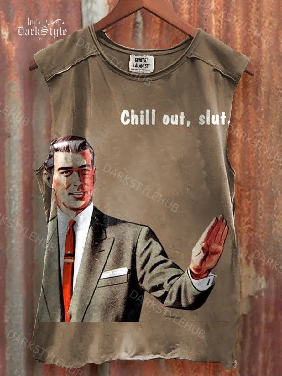 Vintage Chill Out Slut Art Print Casual Short Sleeve T-shirt