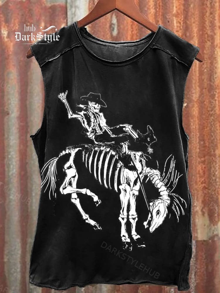 Vintage Ghost Skull Cowboy Art Print 100% Cotton Casual Tank Top