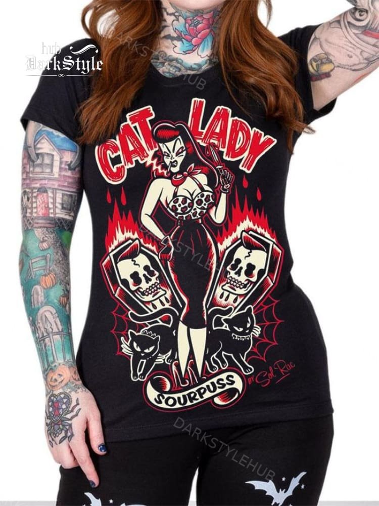 | Material: | Cotton Blend | Style: | Casual | Theme: | Gothic | Pattern: | Cat Lady | ||||||||