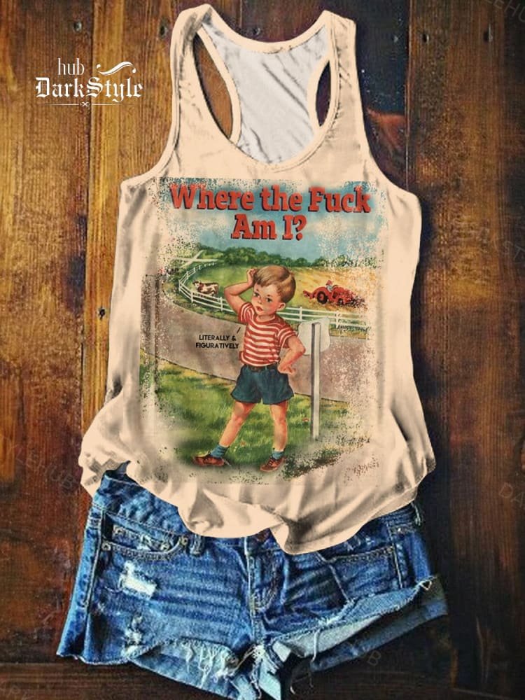 Women's Vintage Where The Fuck Am I Print Tank Top